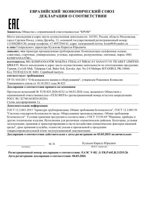 Декларация ТР ТС 010 компенсаторы