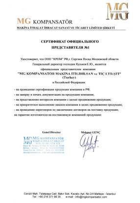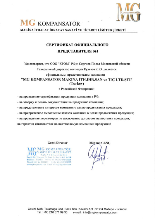 Сертификат официального представителя (оригинал на турецком языке)