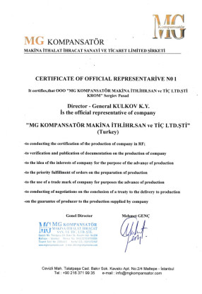 Сертификат официального представителя (перевод на русский язык)